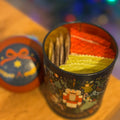 Fiabesco e colorato scrigno di latta cilindrico (Ø 9×14 cm) che custodisce 12 bustine delle migliori selezioni della Linea Meridiani.