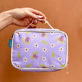 Borsa termica THUN dal design delicato e luminoso, caratterizzata da una raffinata fantasia floreale su fondo lilla. Compatta e funzionale, è ideale per trasportare pranzo, snack, bevande, medicinali o cosmetici mantenendo la temperatura più a lungo grazie al rivestimento interno termico.