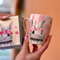Tazze di Pasqua in porcellana con disegno coniglietto e fiori in confezione regalo