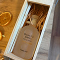 Bellissimo cofanetto in legno contenente un diffusore con bastonci con fragranza Noci & Spezie.