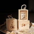 Grazioso cofanetto in legno contenente una candela profumata a base di cera di soia naturale con fragranza Vaniglia & Fragola.